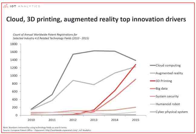 基于10的增長(zhǎng)因數(shù),3D打印/增材制造(AM)或?qū)⒊蔀楣I(yè)技術(shù)的未來(lái)趨勢(shì)。為了在未來(lái)1年或者2年內(nèi)成為"工業(yè)4.0"相關(guān)專利的一顆流星,3D打印緊跟增強(qiáng)現(xiàn)實(shí)和云計(jì)算的腳步。特別有趣的是,3D打印不是一種特定的網(wǎng)絡(luò)技術(shù),因?yàn)樗匈Y格作為一種新的生產(chǎn)方式,因此是硬件基礎(chǔ)。