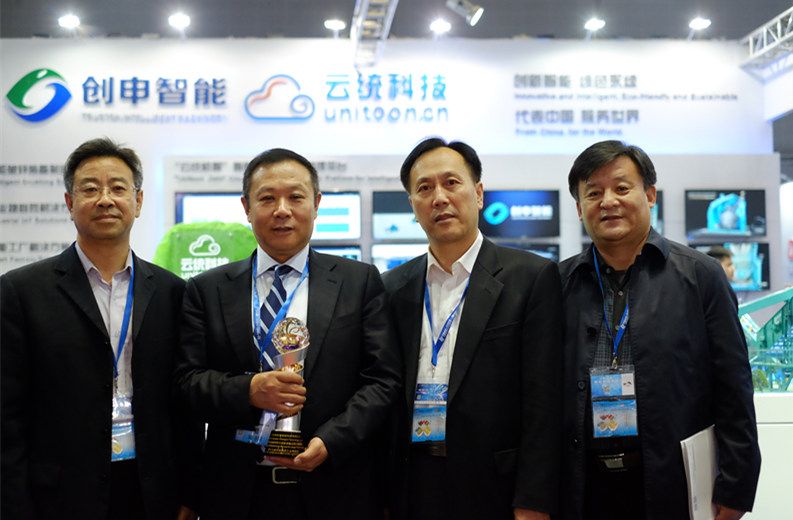2017年11月9日,遼寧省撫順市工業(yè)和信息化委員會(huì)黨委書記 趙晨陽(yáng) 授市長(zhǎng)委托代表?yè)犴樖姓畬3坦馀R云統(tǒng)創(chuàng)申展臺(tái)。另外,遼寧省撫順市人民政府駐上海聯(lián)絡(luò)處 肖健主任,朱東新處長(zhǎng)等領(lǐng)導(dǎo)也光臨云統(tǒng)創(chuàng)申展臺(tái)。徐欣董事長(zhǎng)與撫順市相關(guān)領(lǐng)導(dǎo)合影留念。