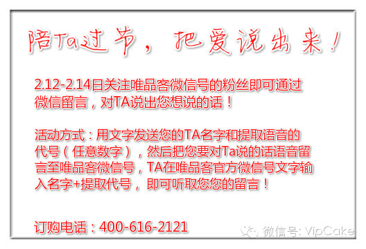 2.12-2.14日關(guān)注唯品客微信號的粉絲即可通過微信留言,對TA說出您想說的話!