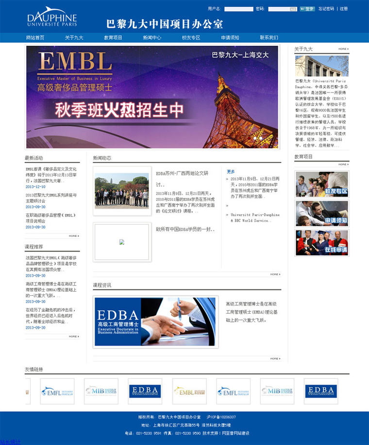 巴黎九大(Université Paris Dauphine,中譯又名巴黎-多芬納大學(xué))是法國唯一一所獲得歐洲管理發(fā)展基金會(huì)(EQUIS)認(rèn)證的綜合大學(xué),學(xué)校位于巴黎16區(qū),現(xiàn)有9000名法國學(xué)生和外國留學(xué)生、以及1500名進(jìn)行繼續(xù)教育的管理人員。
